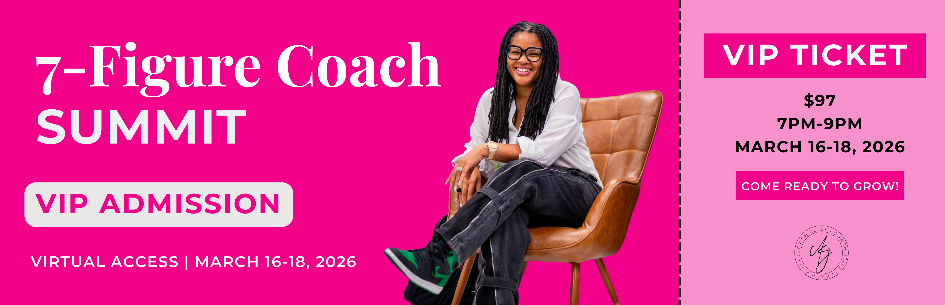 VIP gets you the exclusive VIP ticket and access to the VIP ONLY Zoom session with Q&A and VIP Hot Seat coaching with Coach Kelly J.